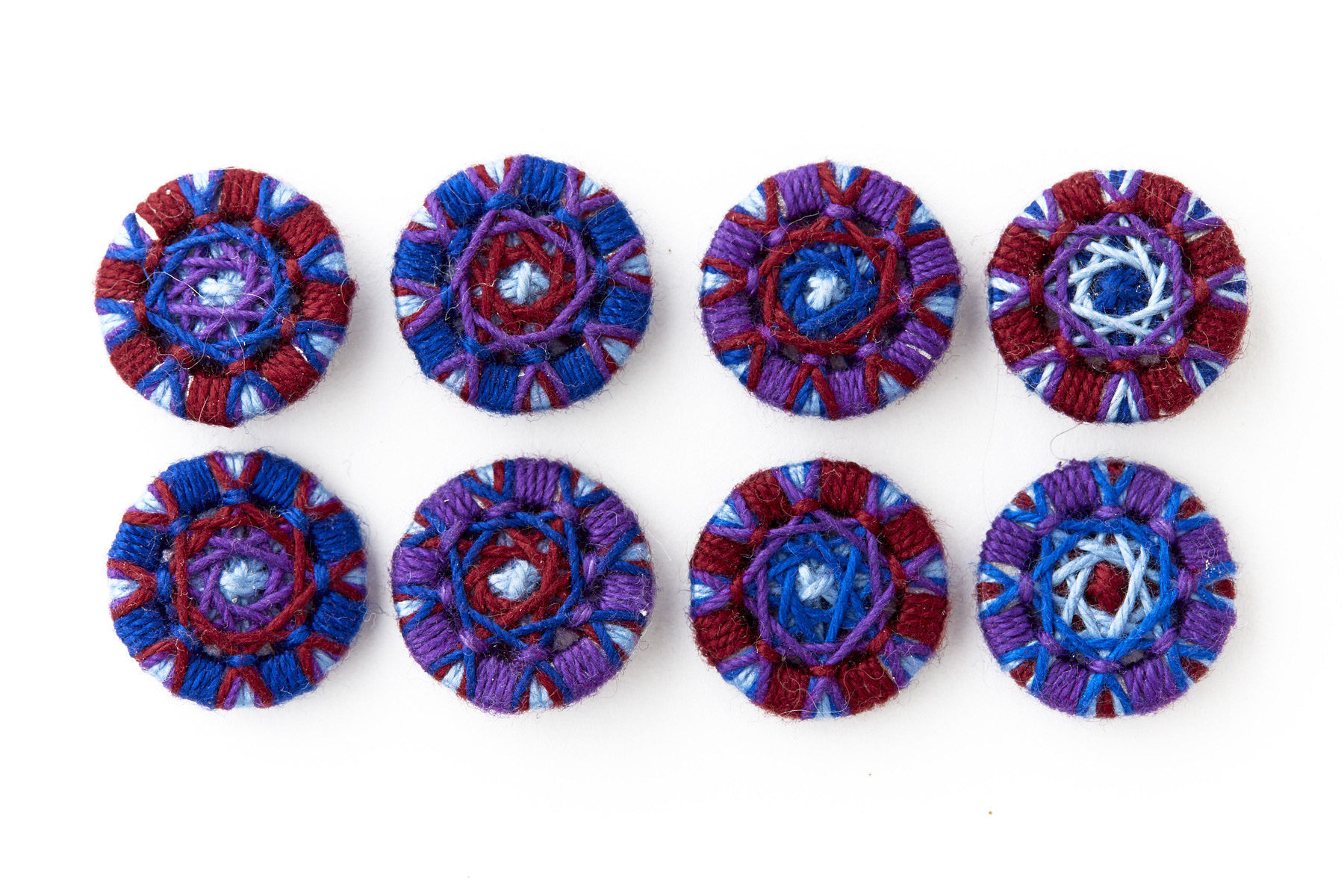 Violett, Blau und Dunkelrot - kühl und doch warm & verführerisch wickeln sich diese Farben um die kleinen Knöpfchen
