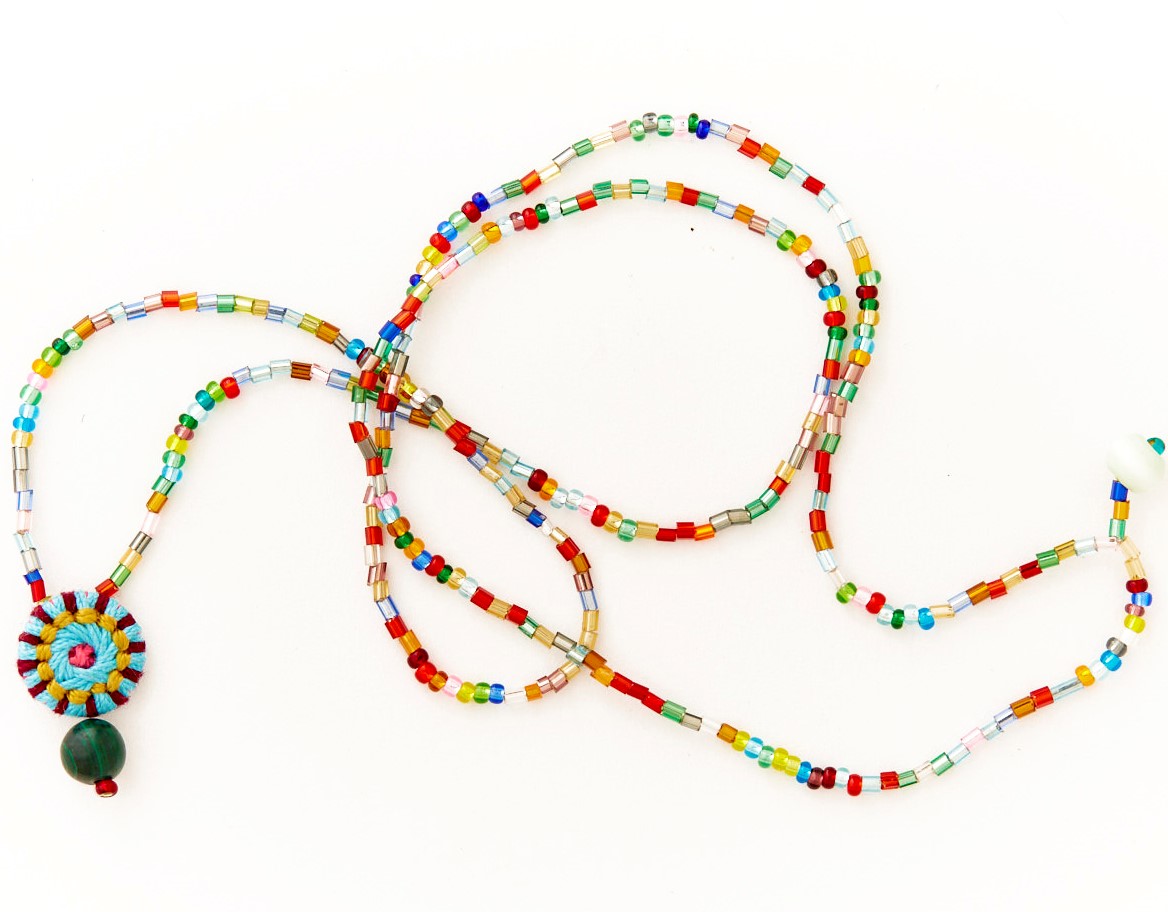 Glasperlenkette mit Kranzknopf und kleiner Jaspisperle