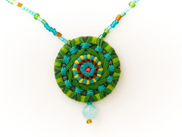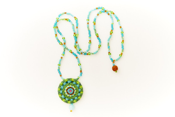 Glasperlenkette mit Posamentenknopfanhänger und Jadeperle Gesamtlänge ca. 36 cm Knopfdurchmesser ca. 3,5 cm