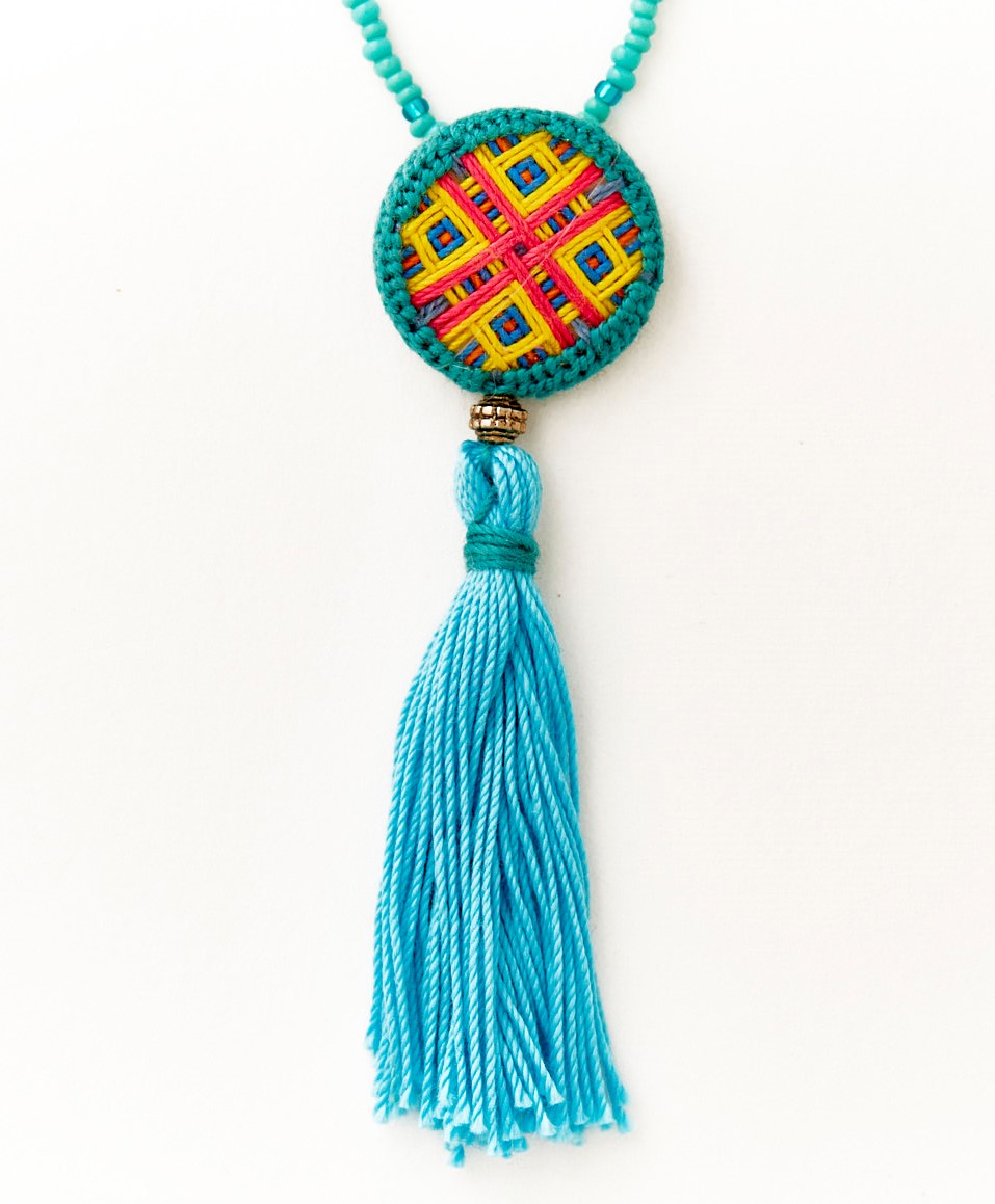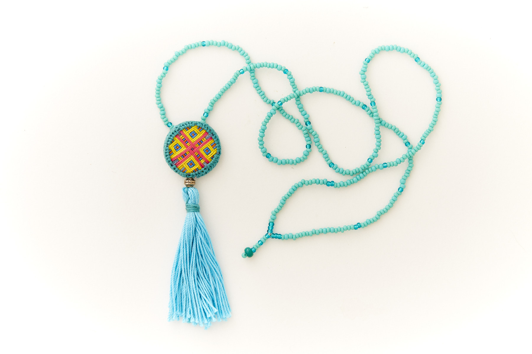 Glasperlenkette mit Posamentenknopfanhänger Gesamtlänge ca. 40 cm Knopfdurchmesser ca. 2,5 cm
