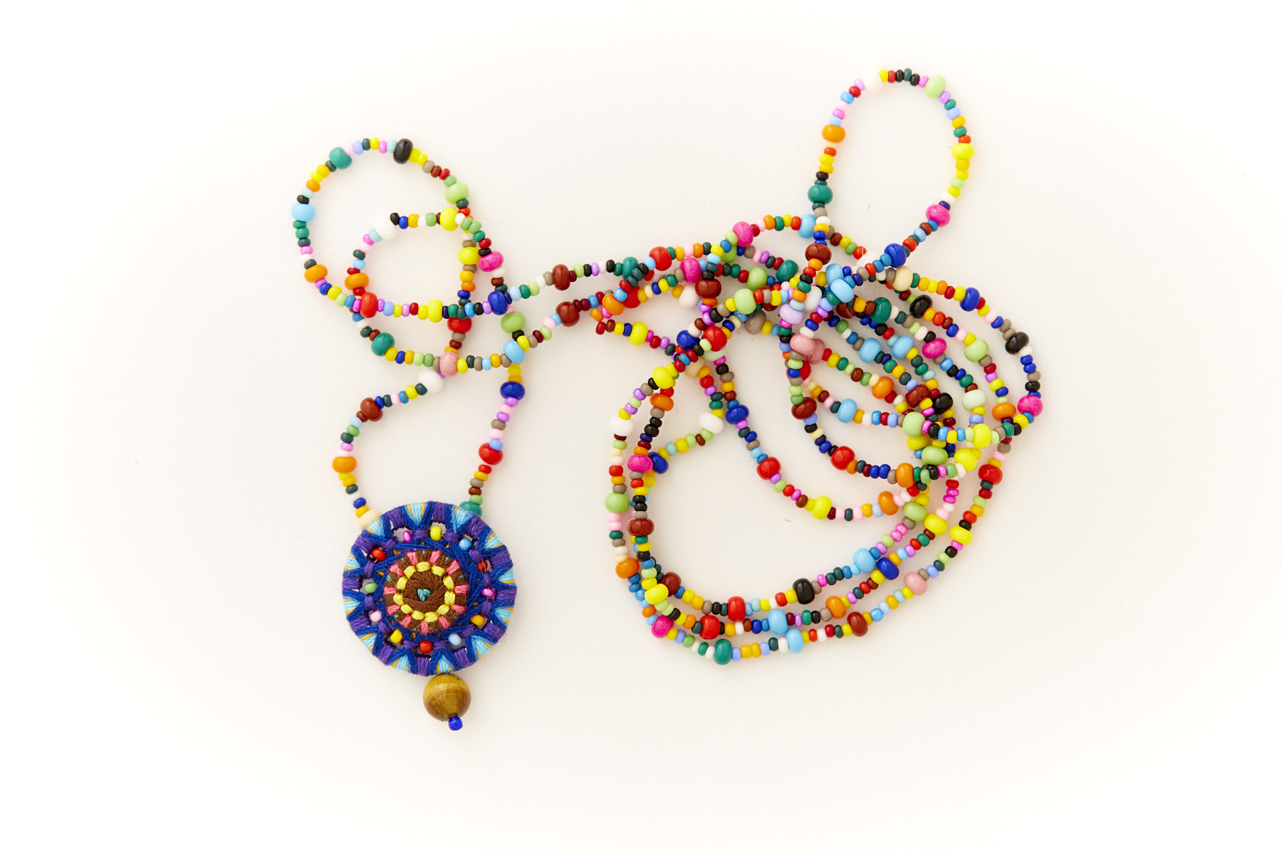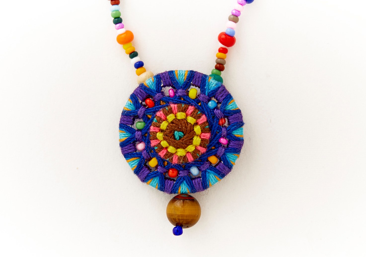 lange Glasperlenkette mit Posamentenknopfanhänger und Tigeraugenperle Gesamtlänge ca. 75 cm (zum doppelt wickeln) Knopfdurchmesser ca. 3,2 cm