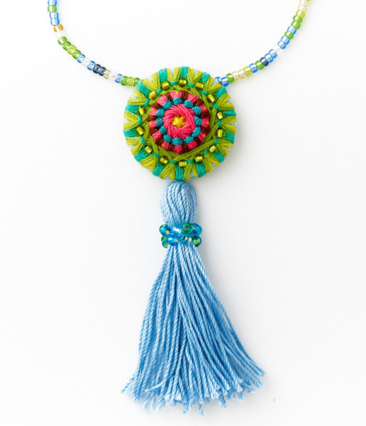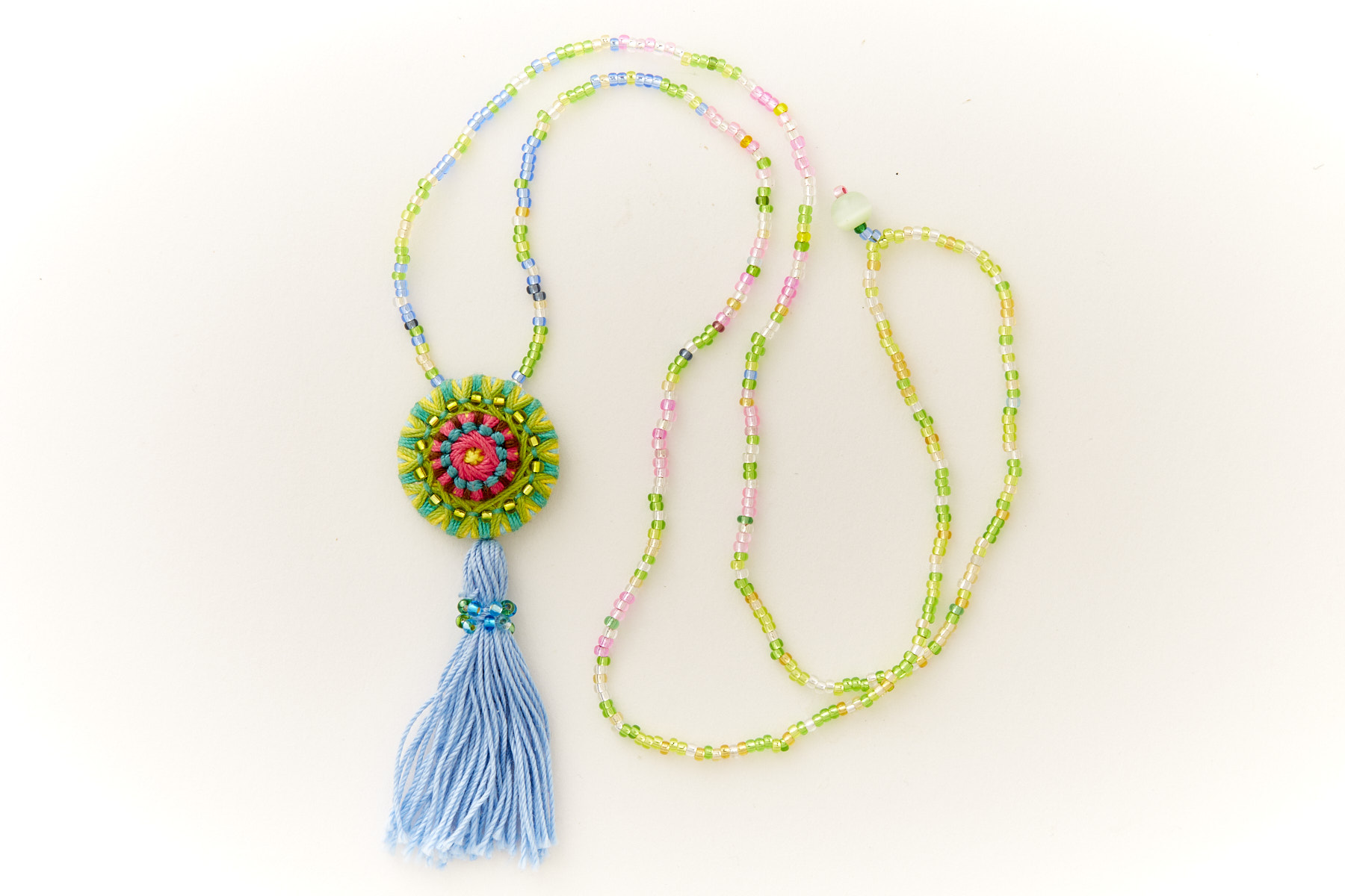 Glasperlenkette mit Posamentenknopfanhänger Länge: ca. 40 cm Durchmesser Knopf: ca. 2,8 cm