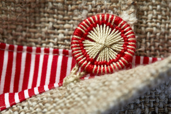 Joy for your Handy. Gefütterte Handtasche mit süßem Wäscheknöpfchen und Possamentenborte